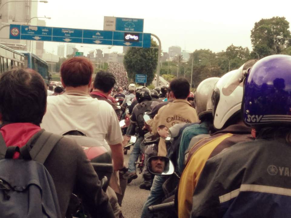 Hàng ngày có cả chục ngàn người từ Malaysia sang Singapore làm việc nên hễ đến cửa khẩu này sau 5 giờ sáng là kể như đứng chờ. Mình chưa bao giờ thấy có cái cửa khẩu nào đông như thế này. Cả ngàn người phóng xe như điên, chạy cho nhanh, rồi đến nơi chờ. Với cả ngàn người khác.