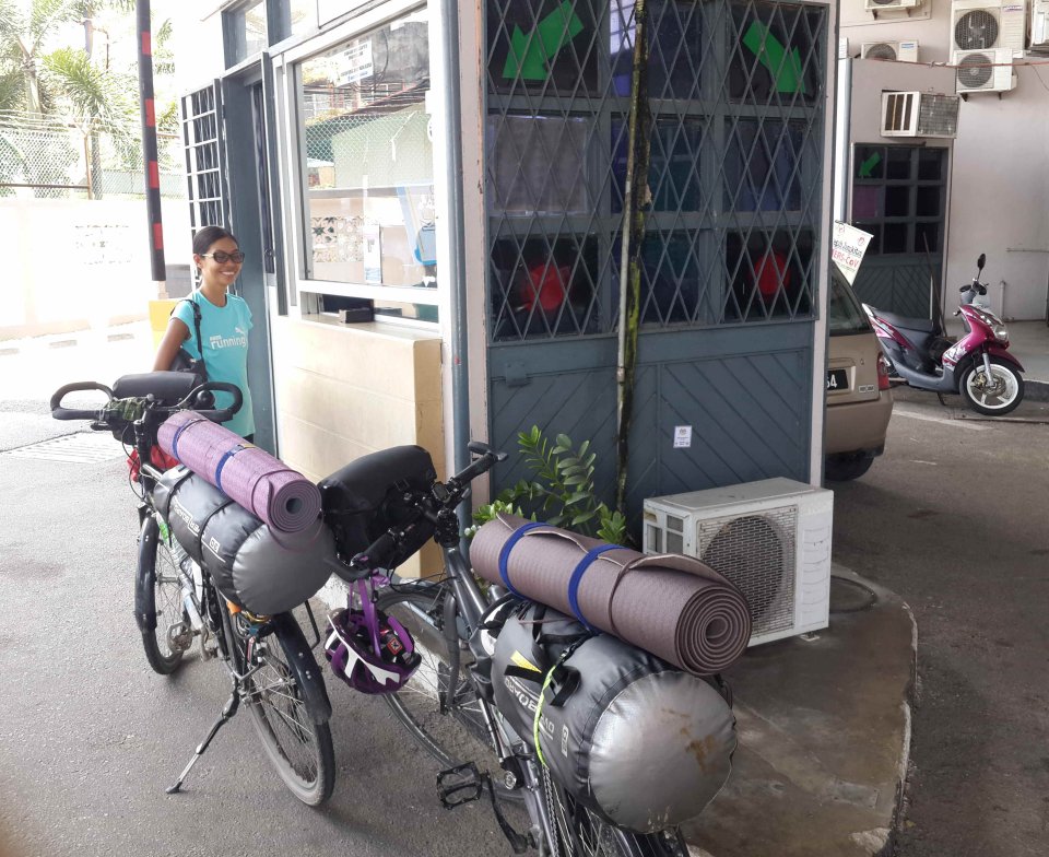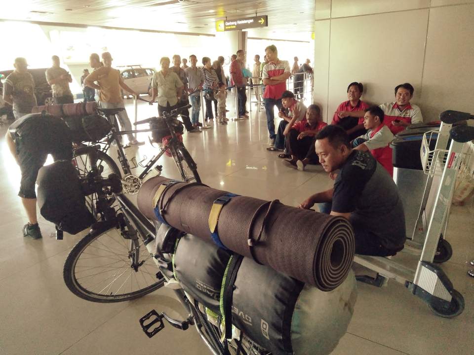 Đến sân bay Juanda ở Surabaya, sau khi làm thủ tục nhập cảnh thì đến quầy nhận hành lý. Tụi mình đến nơi đã thấy 2 chiếc xe đạp được dựng riêng sẵn ở 1 góc. Có 1 anh chàng khuân vác còn khuân để lên xe đẩy dùm. Tụi mình qua cổng Hải quan cũng không gặp vấn đề gì cả.