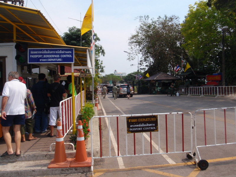 Vừa qua khỏi cửa khẩu Cham Yeam của Campuchia là đã thấy lính canh người Thái và chó bergie ngồi bên đường. Qua đến cửa khẩu Ban Hat Lek của Thái Lan, cán bộ nhìn cũng rất ngầu. Có điều chỗ làm thủ tục siêu nhỏ, hẹp. Có 1 cái bàn để mình điền đơn, nắng ơi là nắng rồi xếp 1 hàng dài duy nhất để đưa passport đóng dấu.