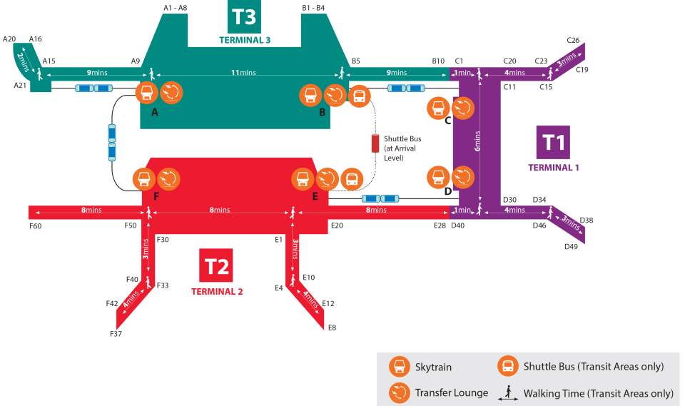 Năm ngoái tụi mình đi thì sân bay Changi chỉ phân ra làm 3 Terminal. Tụi mình bay của Tigerair phải khởi hành từ Terminal 2. Nhưng đường đi vào sân bay thì lại gặp Terminal 3 trước. Đường đó không dành cho xe máy, chỉ dành cho xe hơi nên không tài nào băng ngang qua để đến Terminal 2 được. Quá nguy hiểm. Fraser dẫn cả người cả xe vào Terminal 3 hỏi thăm quầy dịch vụ xem có cách nào tụi mình đến Terminal 2 không. May ghê, cả 3 Terminal đều nối với nhau. Thế là tụi mình cứ thế dẫn 2 chiếc xe vẫn còn cộ hết đồ đạc trên đó, đi vòng vèo cho đến Terminal 2.