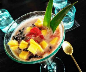 Đặc biệt, quán có bán nước uống Cỏ lúa mì (wheatgrass) hay còn gọi là Cỏ mạch, được biết đến với lượng dưỡng chất 1 ly = 1 kg rau củ quả. Giá 25 IDR/ly (nhỏ xíu, như 1 shot). Uống ngọt lạ, hay hay, được kèm theo 1 lát táo.