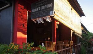 “Warung” trong tiếng Indo có nghĩa là “quán ăn, quán cà phê”. Còn “Kecil” có nghĩa là nhỏ nên cái quán này nhỏ thiệt. Tuy vậy, quán có đầy đủ các yếu tố để thu hút dân du lịch tiết kiệm như tụi mình: