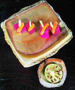 Món ưa thích nhất của mình ở đây là “Rare Yellow Fin Tuna Salad” – Xà lách cá ngừ. Trước giờ ở Việt Nam, hễ nói đến Tuna salad hay xà lách cá ngừ là nơi nào cũng phục vụ cá ngừ đóng hộp, nát bấy, ngâm trong sốt mayonnaise thấy mà ghê. Ở Bali, đi đâu cũng thấy tuna mà đâu có thèm ăn, vì nghĩ nó cũng kinh dị như ăn ở Việt Nam. Hôm đó, không biết sao Fraser nói ăn thử món này đi, em sẽ thích. Mình mới cá với Fraser và gọi thử.